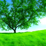 Single tree in green field under blue sky, grasslands, realistic photo, stock photo, HD, stockphoto, beautiful panoramic imagery --- 青空の下、緑のフィールドに一本の木、草原、リアルな写真、ストックフォト、HD、ストックフォト、美しいパノラマ画像