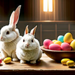 concept art, rabbit, Easter Eggs, product shot, realistic photo, hyper quality, elaborate, dslr, ultra detailed, beautiful atmosphere, studio lighting, --- コンセプトアート、ウサギ、イースターエッグ、プロダクトショット、リアルフォト、ハイパークオリティ、精巧、dslr、超詳細、美しい雰囲気、スタジオライティング、