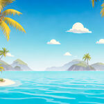 美しいデザイン、シンプルなイラスト、フラットデザイン、海、明るい色、夏、自然光、ハイコントラスト、アンリアルエンジン、ハイパーリアリスティック