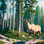 best quality, masterpiece, animal, 1 elk, extremely long shot, white birch forest, mountainous area, ultra high res, (photorealistic)1.4, RAW photo, product shot, divine atmosphere, cinematic lighting