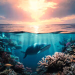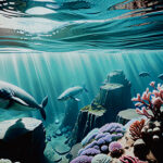 息を呑むような風景, 自然の驚異, 色とりどりの海藻と珊瑚, 静かな景色, (深海:1.2), (海中:1.3), ムーディーな照明, 美しい雰囲気, 風光明媚 , 絵本の挿絵, 神々しい雰囲気