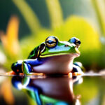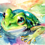 highres, ultra detailed, hyper quality, frog, waterside, wide shot, Comforting atmosphere, natural lighting