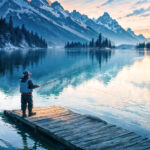 high resolution, hyper quality, insanely detailed, landscape photo, best view, Peaceful Day of a Fisherwoman, Tranquil Lakeside, Fishing rods, fishing tackle boxes,