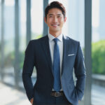 Business scene, 30-year-old, beautiful Japanese man, (smile:0.7), business suit, bokh, natural lighting,