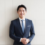 ビジネスマン ビジネス サラリーマン 会社 仕事 笑顔 さわやか 紺 スーツ オフィス 働く人 労働者 就業 白背景