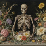 ヴァニタス、メメント・モリ、色あせた西洋絵画、赤、黄、白、水色、美しい花、草花の浸食、風化、虚無、死と腐敗、退廃、傑作、超細密、