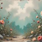 Vanitas, Memento Mori, faded Western paintings, red, yellow, white, light blue, beautiful flowers, erosion of grass and flowers, weathering, emptiness, death and decay, decadence, masterpieces, ultra-detail,