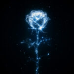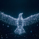 鳥 とり バード 飛ぶ 羽ばたく 光 輝き 発光 暗い デジタルアート 光の粒 キラキラ 黒 青 白