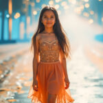女の子 女子 歩く ウォーク ウォーキング 笑顔 ほほえみ ドレス モデル 赤 レッド 観客 ファッションショー 子供 こども キラキラ ふわふわ FLUX.1