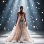 女性 女子 歩く ウォーク ドレス 白 モデル ファッションショー 背中 後ろ姿 バックショット キラキラ ブロンド FLUX.1