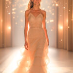 女性 女子 歩く ウォーク ドレス 白 モデル ファッションショー レース キラキラ FLUX.1