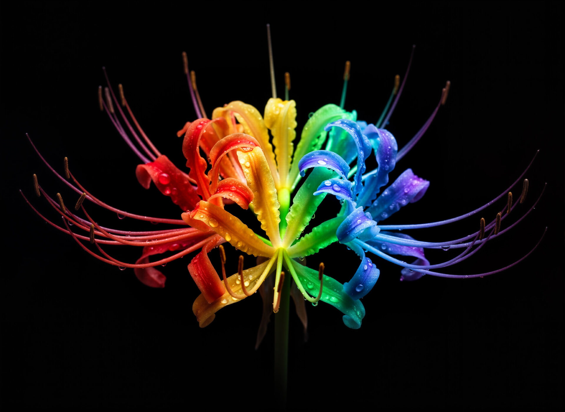 彼岸花 曼殊沙華 リコリス 虹色 レインボーカラー 花 秋 黒背景