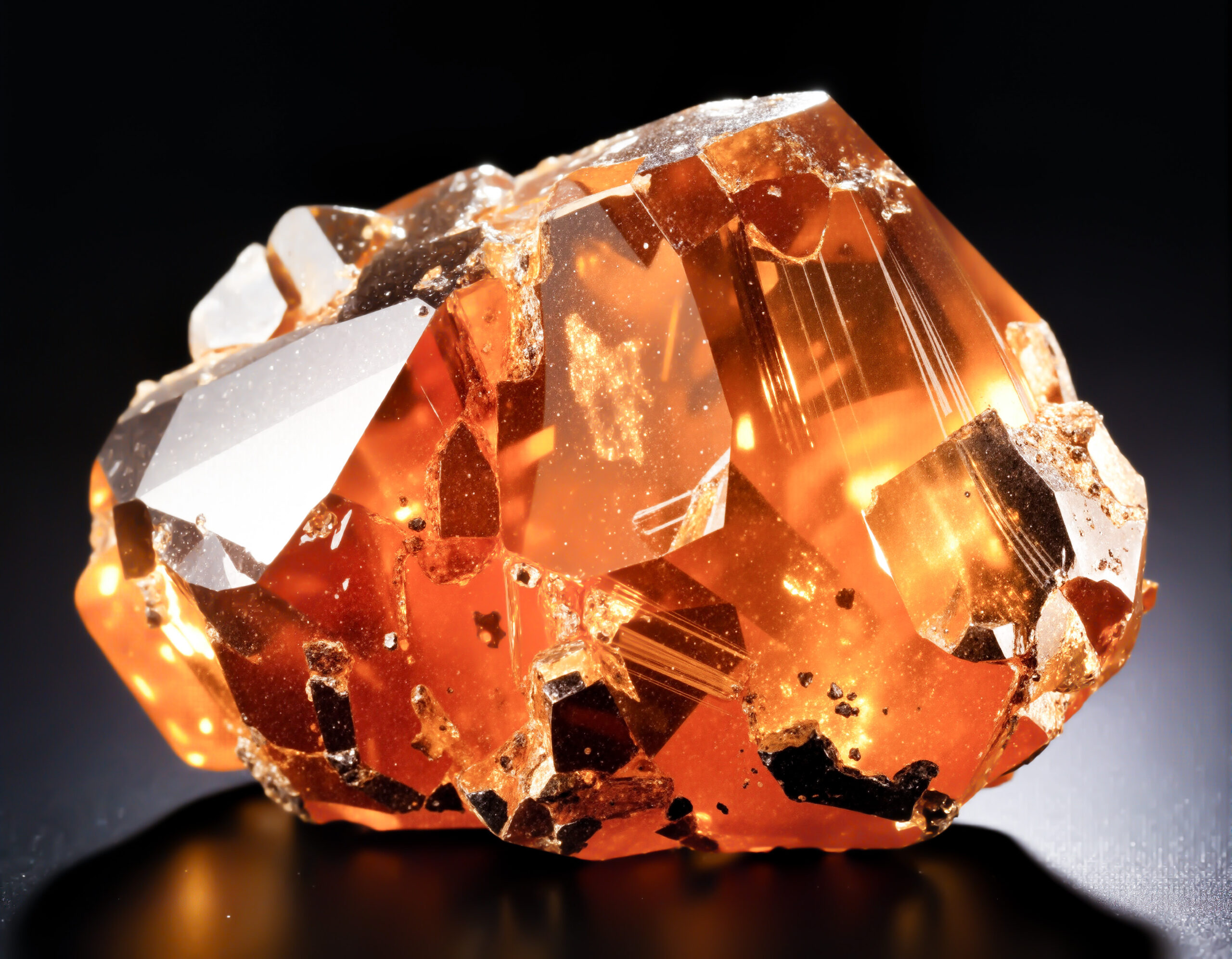 鉱石 宝石 石 キラキラ 透明 反射 光 黄色 琥珀色 金色 黒背景 Firefly→FLUX