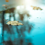 水 水滴 しずく 波紋 はねる 雨 雨天 赤 オレンジ 青 街 舗装 光 道路 アスファルト Firefly