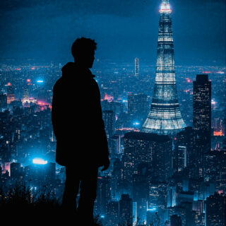 高台から街を見下ろす男性 02