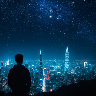 高台から街を見下ろす男性 01
